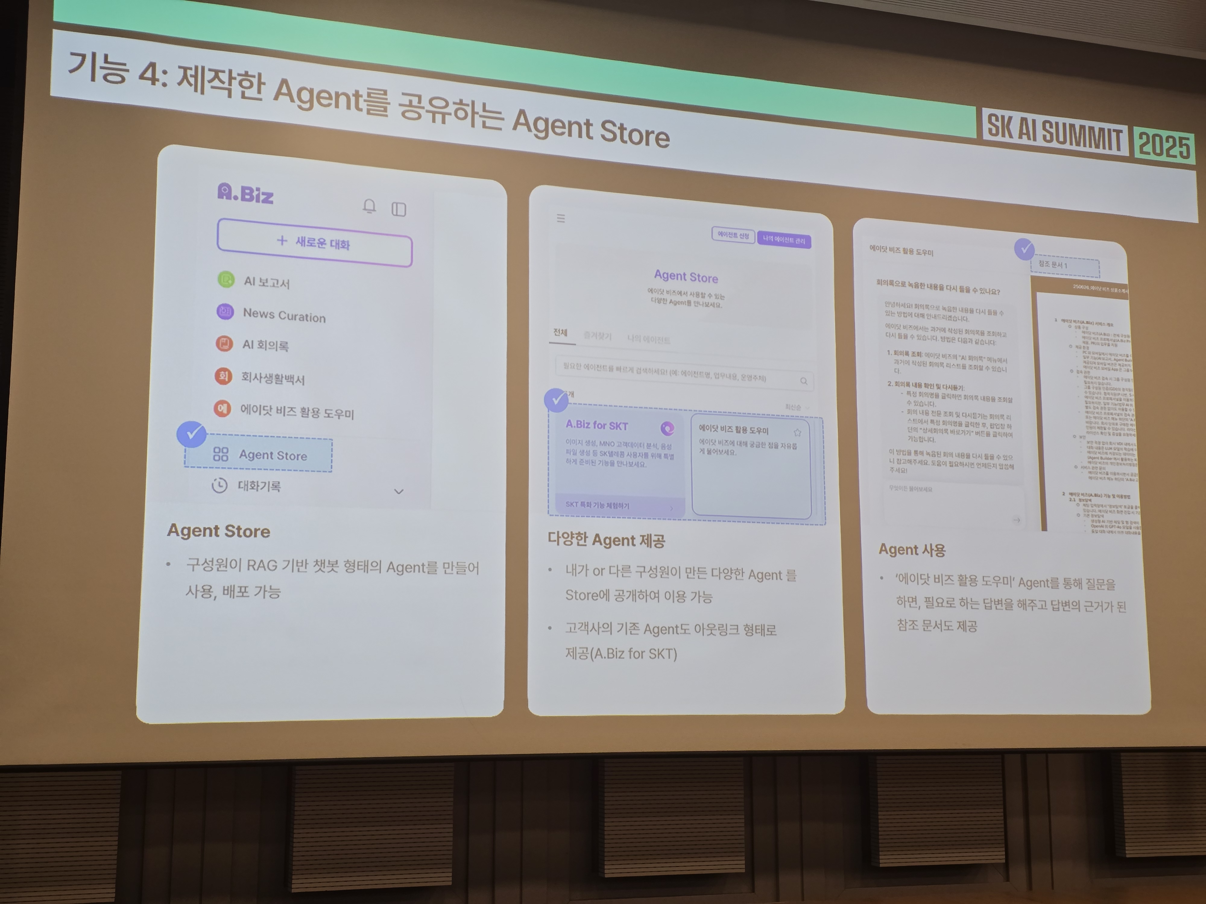 A.Biz의 우수성은 실제 도입 사례를 통해 입증되고 있습니다. 2025년 2월 SK텔레콤과 SK C&C 구성원 300여 명을 대상으로 시작된 비공개 베타 테스트(CBT)는 수개월간 진행되며 솔루션의 성능을 고도화했습니다. 테스트 과정에서 수집된 사용자 피드백을 바탕으로 사용자 중심의 편의성을 높이고, 피드백 수집 및 지식관리 체계를 강화했습니다.
