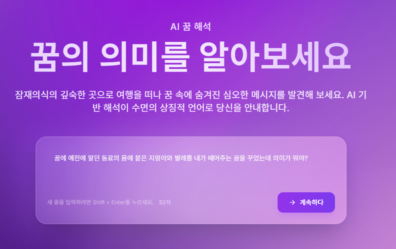 제가 직접 꿈을 입력하고 해몽을 받아본 경험은 꽤 인상적이었어요. 일단 인터페이스가 군더더기 없이 깔끔해서 좋았고요. 꿈 이야기를 입력하는데, 마치 심리 상담사에게 이야기하듯 편안한 느낌이 들었습니다. "깊은 바닷속을 헤엄치는 꿈"이라고 입력했더니, "무의식의 세계로 깊이 파고드는 여정을 의미하며, 자신의 감정 상태를 탐색하려는 욕구를 나타냅니다."와 같은 해석을 바로 내놓더군요.